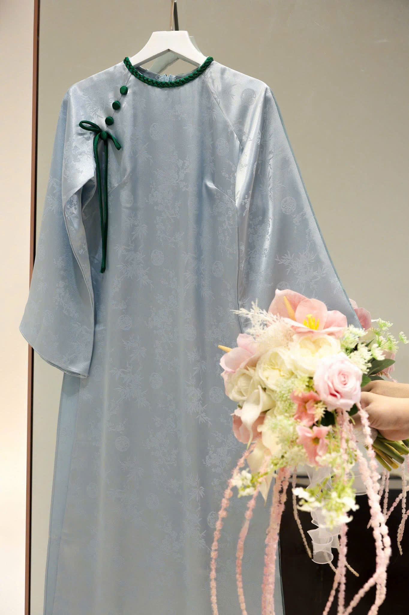 • Chất Liệu Thông Minh: Ưu tiên hàng đầu của ADBT050 là sự thoải mái. Áo sử dụng các loại vải như lụa twill, cotton lụa hoặc vải pha spandex, mang lại cảm giác mềm mại, thấm hút mồ hôi tốt và ít nhăn, dễ bảo quản. Đây là điểm khác biệt lớn so với các loại vải cứng và nặng thường dùng cho áo dài cưới.