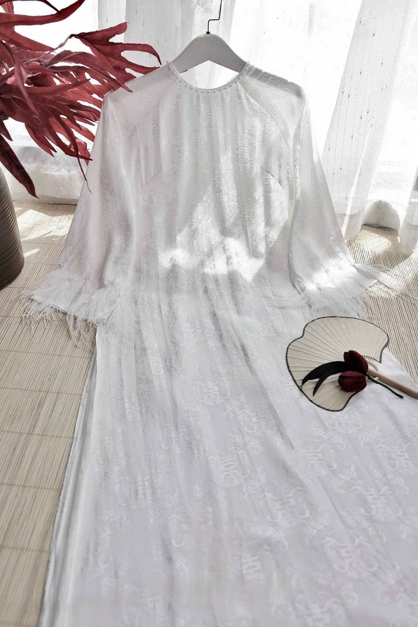 - Chất Liệu Thông Minh: Ưu tiên hàng đầu của ADBT057 là sự thoải mái. Áo sử dụng các loại vải như lụa twill, cotton lụa hoặc vải pha spandex, mang lại cảm giác mềm mại, thấm hút mồ hôi tốt và ít nhăn, dễ bảo quản. Đây là điểm khác biệt lớn so với các loại vải cứng và nặng thường dùng cho áo dài cưới.