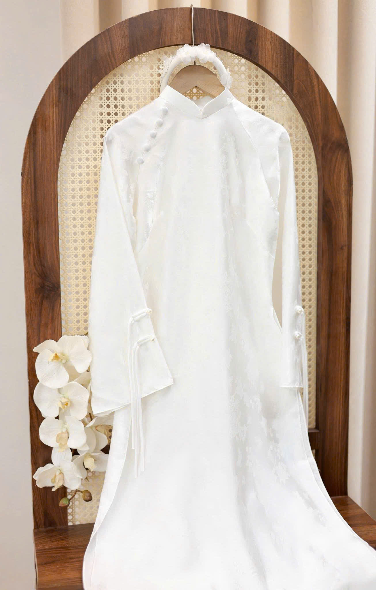 - Chất Liệu Thông Minh: Ưu tiên hàng đầu của ADBT131 là sự thoải mái. Áo sử dụng các loại vải như lụa twill, cotton lụa hoặc vải pha spandex, mang lại cảm giác mềm mại, thấm hút mồ hôi tốt và ít nhăn, dễ bảo quản. Đây là điểm khác biệt lớn so với các loại vải cứng và nặng thường dùng cho áo dài cưới.