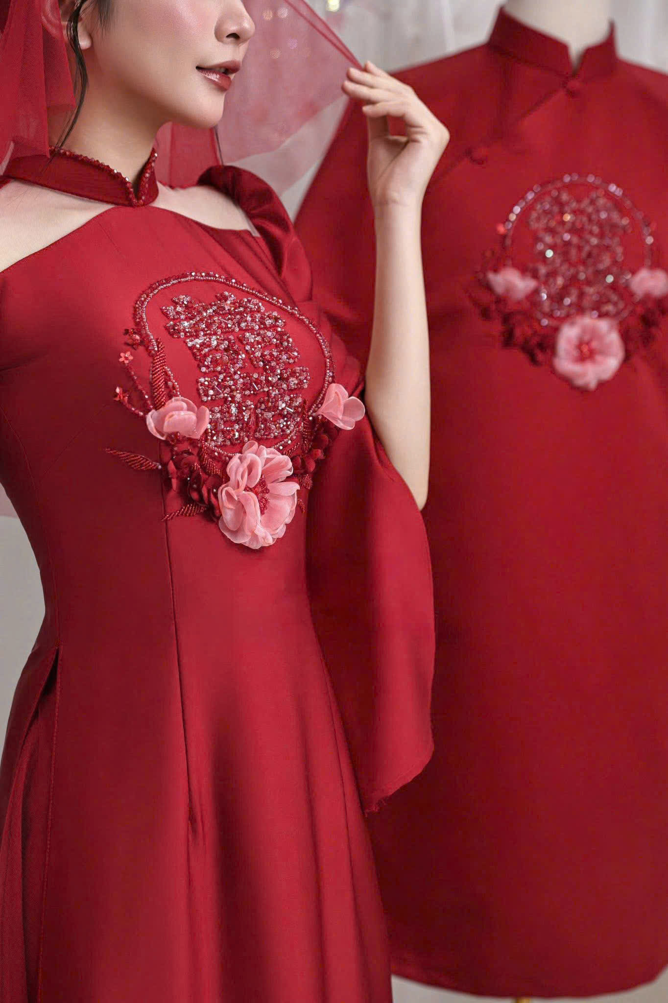 Màu Sắc Biểu Tượng: Tông màu chủ đạo là đỏ thắm truyền thống – biểu tượng của may mắn, hạnh phúc và tình yêu nồng cháy. Hoặc, với những cô dâu hiện đại, ADC025 cũng có thể được sáng tạo với các màu sắc như hồng ngọc, vàng hoàng gia… vẫn giữ trọn vẹn nét đẹp trang trọng.