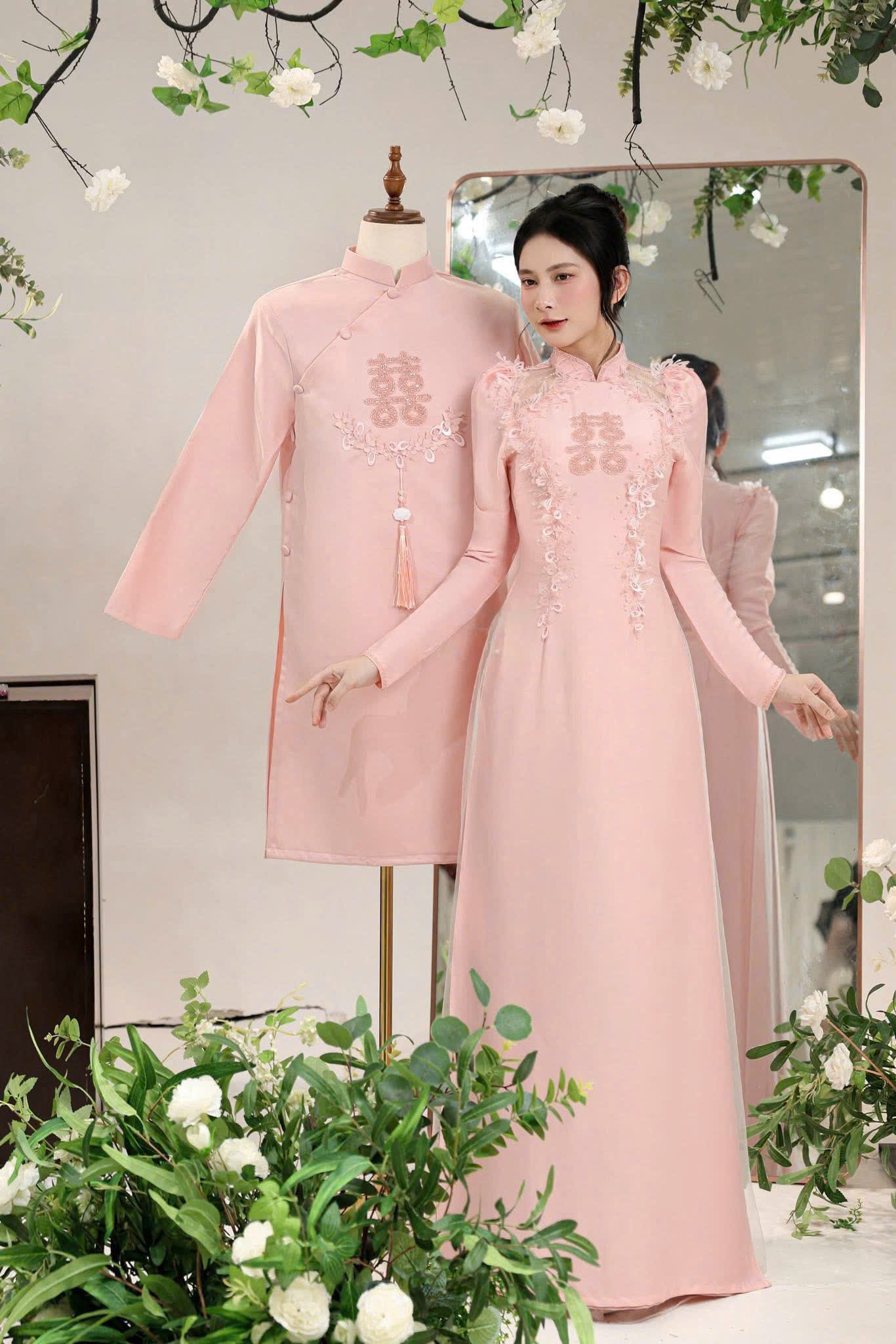 Thiết Kế Tôn Dáng: Form áo ôm sát nhưng không gò bó, tôn lên những đường cong quyến rũ của người phụ nữ. Tà áo dài thướt tha, kết hợp với chiếc quần rộng tạo nên sự uyển chuyển, thanh thoát trong từng bước đi, khiến cô dâu trở thành tâm điểm rạng ngời và đầy duyên dáng.