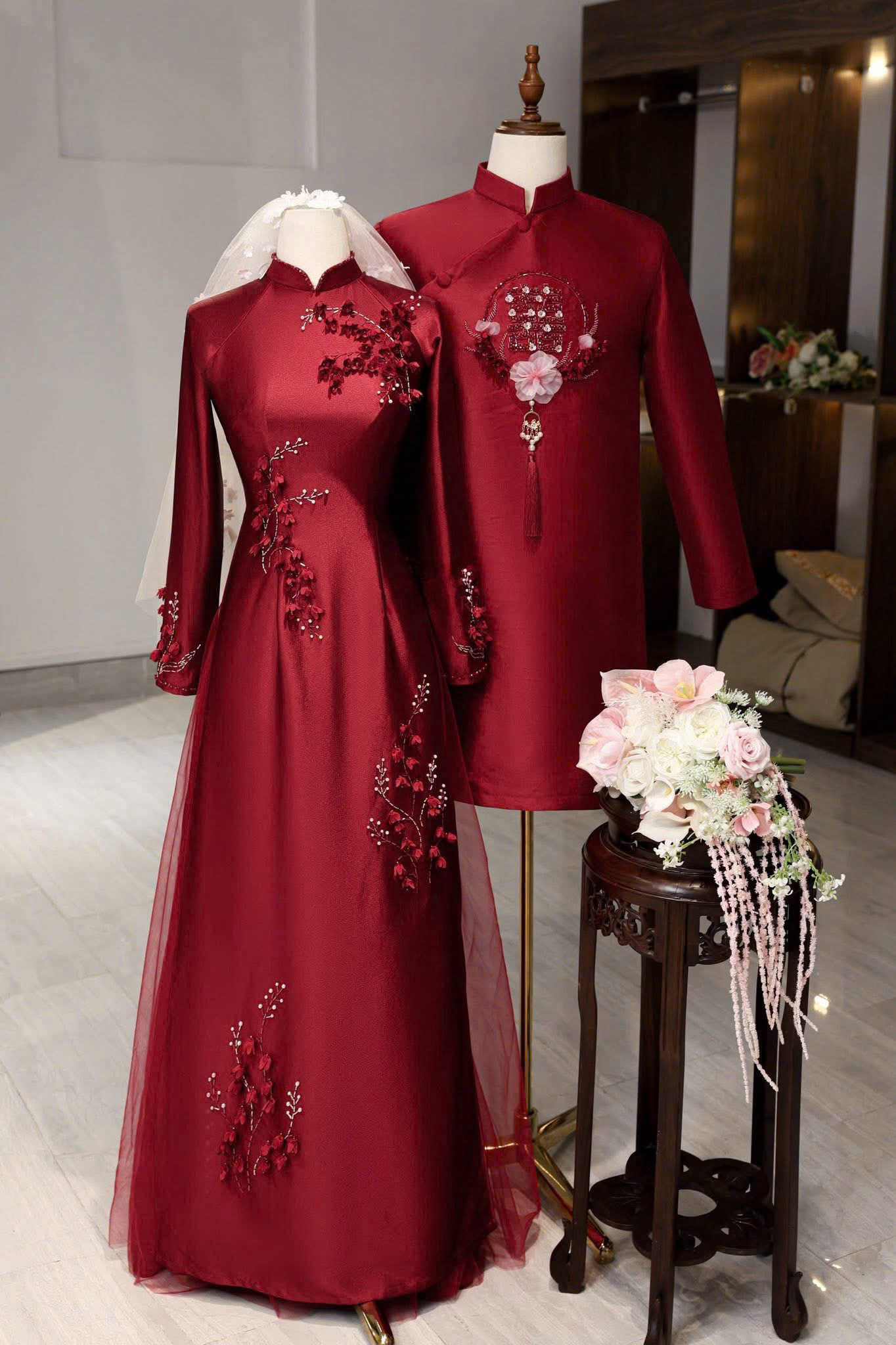 Màu Sắc Biểu Tượng: Tông màu chủ đạo là đỏ thắm truyền thống – biểu tượng của may mắn, hạnh phúc và tình yêu nồng cháy. Hoặc, với những cô dâu hiện đại, ADC037 cũng có thể được sáng tạo với các màu sắc như hồng ngọc, vàng hoàng gia… vẫn giữ trọn vẹn nét đẹp trang trọng.