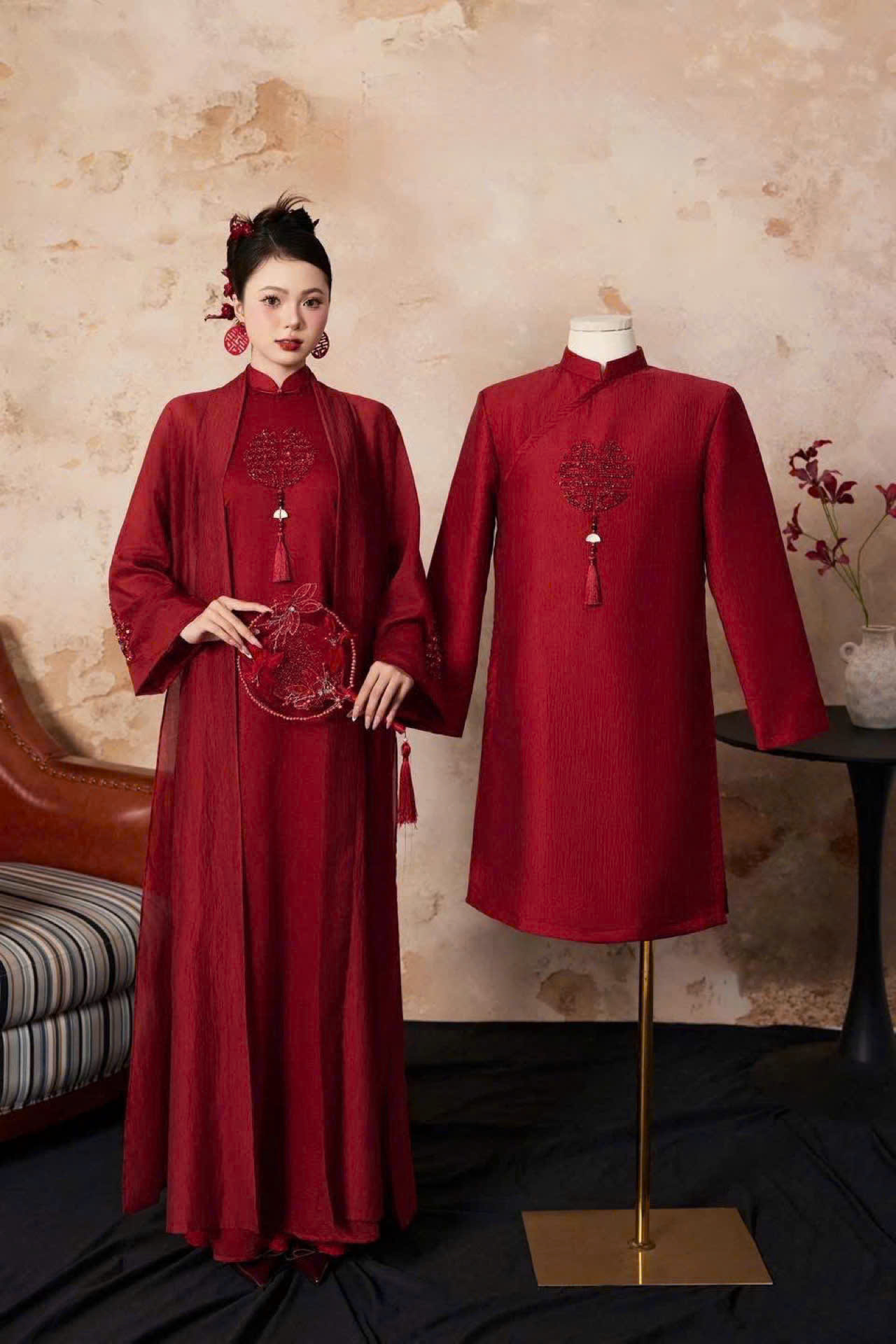 Màu Sắc Biểu Tượng: Tông màu chủ đạo là đỏ thắm truyền thống – biểu tượng của may mắn, hạnh phúc và tình yêu nồng cháy. Hoặc, với những cô dâu hiện đại, ADC095 cũng có thể được sáng tạo với các màu sắc như hồng ngọc, vàng hoàng gia… vẫn giữ trọn vẹn nét đẹp trang trọng.